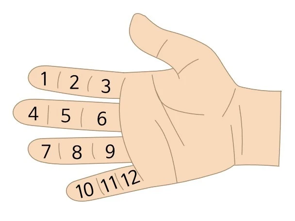 왼손으로 1~12까지 세고, 오른손으로는 12의 배수를 표현한다.