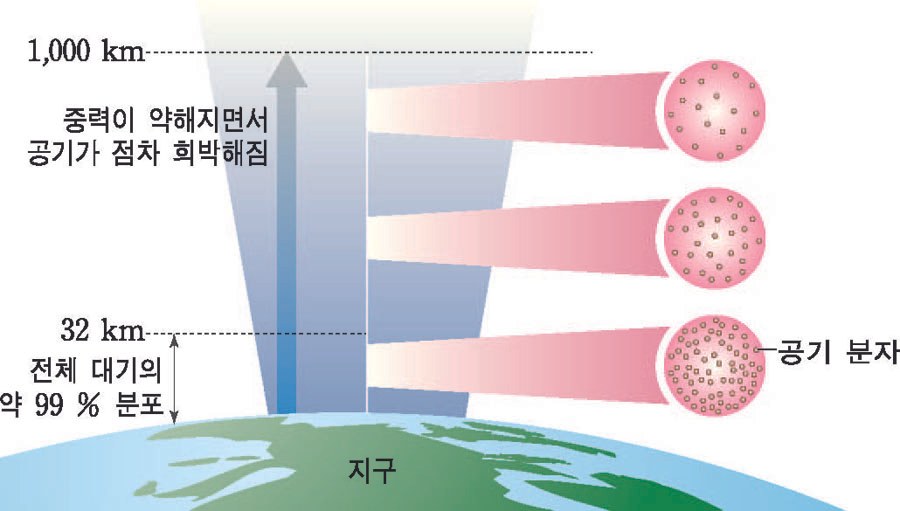 지구의 중력으로 인해 지표면에 가까울수록 공기 분자가 많아진다.그리고 열 주의의 모든 물체는 복사열이 지나갈 때 연속적으로 복사 에너지를 내보내거나 흡수하는데, 전자파를 흡수할 대상이 없으면 열은 그냥 지나갈 뿐입니다. 게다가 진공 상태인 우주의 가스 분자는 너무 적고, 서로 멀리 떨어져 있어서 규칙적인 충돌이 일어나지 않습니다. 우리가 하늘로 올라갈수록 더 추워지는 이유도 마찬가지예요. 대기권으로 올라갈수록 공기가 더 희박해지기 때문에 열복사와 열전도의 영향을 덜 받게 되어 지표면에 비해 차갑다고 느껴지는 거예요.