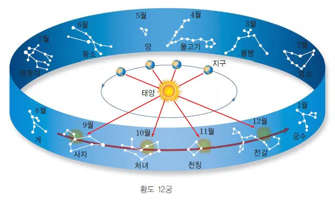참고로, 지구에서 바라봤을 때 태양이 움직이는(것처럼 보이는) 궤도를 '황도(ecliptic)'라고 합니다. 태양이 육안으로 볼 때 누렇게 보여 누런 길이라는 의미로 지었어요. 그리고 이러한 태양의 운동을 연주 운동이라고 해요. 그 옛날 사람들 눈에는 태양이 돌고 있는 것처럼 보였을 테니, 지구를 중심으로 태양이 돌고 있다고 믿었던 것도 그 당시에는 어쩔 수 없었겠지요. 그래도 지구는 태양 주위를 돌고 있지요. 이것을 공전이라고 합니다.