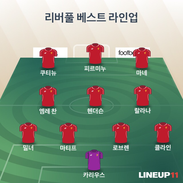 리그에서 가장 빠르게 팀 30골 고지를 달성한 리버풀의 공격력(11R 기준 경기 당 2.72골)은 지난 시즌(11R 기준 경기 당 1.09 골) 보다 훨씬 위력적이다. 그 중심에는 네 명의 선수들이 있다. '쿠티뉴-피르미누-마네'로 이어지는 주전 쓰리톱과 미드필더 랄라나의 활약이 리버풀의 득점률 상승에 크게 기여했다. 현재 쿠티뉴가 5골 5도움, 피르미누가 5골 3도움, 마네가 6골 2도움, 랄라나가 3골 5도움을 기록하고 있으며 네 명의 선수들은 팀의 30골 중 약 63%인 19골을 책임지고 있다.