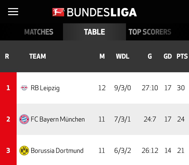 RB 라이프치히는 오늘 새벽 있었던 프라이부르크와의 원정 경기에서 4:1 승리를 거두며 무패 행진을 또 다시 이어갔다. 6라운드 이후 7연승을 기록하며 승점 30점 고지에 가장 먼저 올랐으며, 오늘 밤에 열릴 다른 팀들의 결과와 상관없이 단독 1위 자리를 확보했다. 2위 팀 바이에른 뮌헨이 오늘 승리를 추가하더라도 여전히 RB 라이프치히가 승점 3점 앞서며 1위를 유지하게 된다.