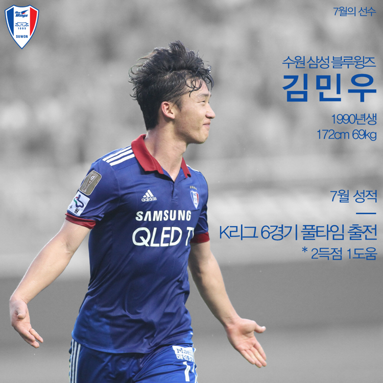 7월 한 달 동안 김민우의 활약상은 더욱 빛났다. 수원 삼성의 7월 6경기를 모두 풀타임으로 소화하며 2골 1어시스트를 기록했다. 공격 포인트 뿐만 아니라 득점의 기점이 되는 움직임을 수차례 보여주며 팀의 5연승을 이끌었다.