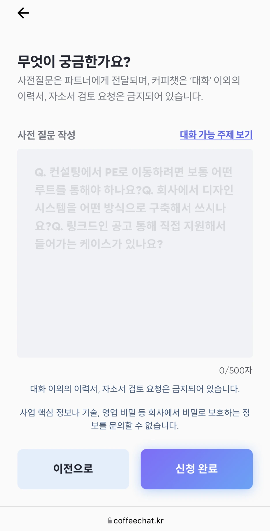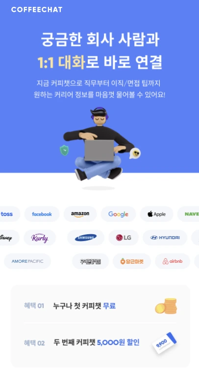 '커리어 대화 연결 플랫폼' 커피챗은 먼저 경험한 사람에게 나의 고민과 궁금함을 풀고,