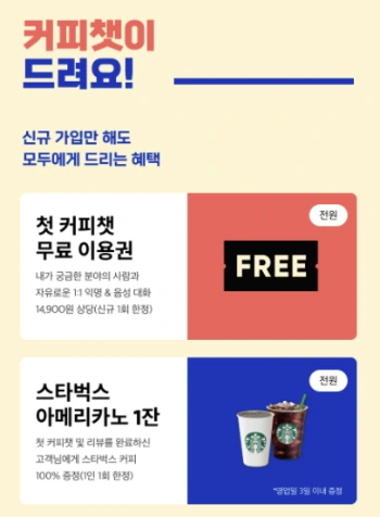 그리고 두 번째 사용을 하려는, 커피챗이 아주 맘에 들어버린 사용자는 이제 가격이 크게 중요한 요소가 아니게 되어버리는 것 아닐까!! 고로, 굳이 서비스 소개에 가격 정보를 잘 보여줄 필요가 없지/일부러 가리지 않았을까... 그렇다면 첫 사용은 앞으로도 계속 무료로 제공되는 식일까 궁금해진다!