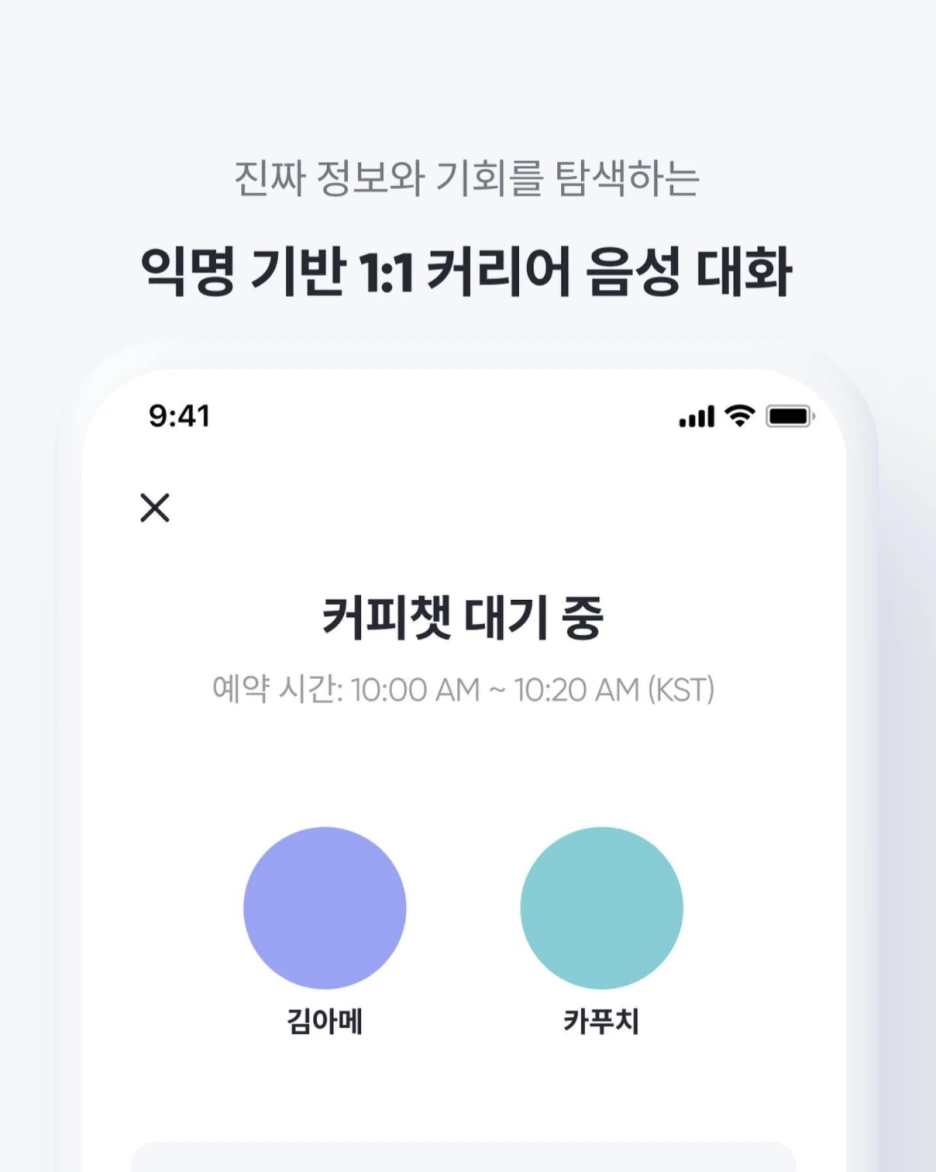 진짜 정보와 기회를 탐색하는 1:1 익명 기반 음성 대화 서비스이다.
