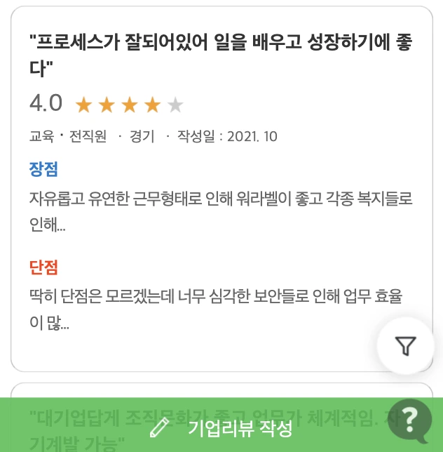 랜딩페이지 내 리뷰 카드는 7개가 노출되고 있다. 그리고 각 리뷰 카드가 겹치는 소구점 없이 적절하게 구성되어있다고 생각했다. [외국계 정보] [경력 이직] [스타트업 정보] [온라인 정보 부족] [콜드 메일 부담] [학교/커리어 정보] [네트워크 확장] 다양한 니즈를 커버할 수 있도록 구성된 점이 좋았다.