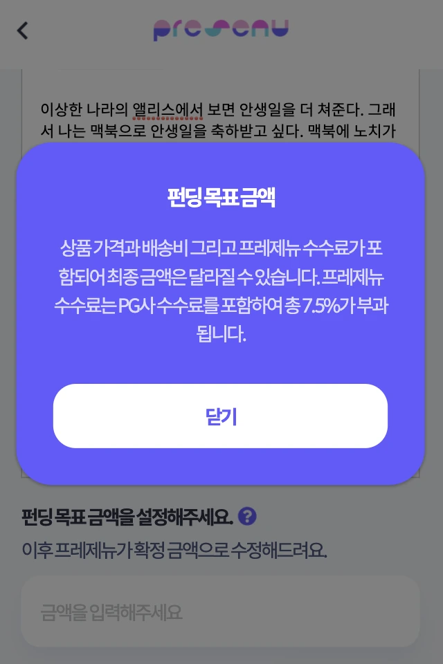 여기서 수수료가 붙는다는 의미가 뭔지, 나는 펀딩을 하고 싶을 뿐인데. 그리고 PG사는 뭔지, 이후 프레제뉴가 확정 금액으로 수정해준다는 의미는 뭔지? 그리고 드는 생각. 그래서 돈을 더 내라는 거야? 누가 더 낸다는 거야?