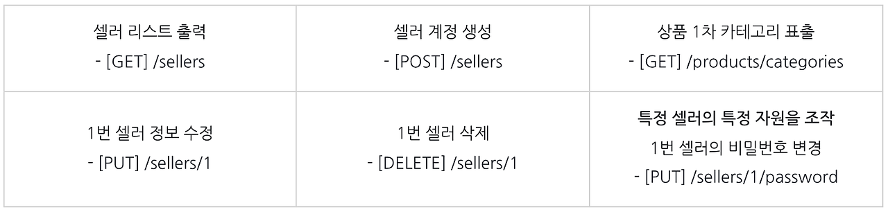그리고 RESTful API는 위의 REST 원리를 잘 따르는 API를 의미한다. REST를 따르면 여러 장점들이 있는데 그중 가장 명확한 점은 self-descriptiveness 인데, 이 자체만으로도 API 목적이 쉽게 이해가 되기 때문이다. 즉, 구조를 이루는 리소스와 메소드만 봐도 이 요청이 어떤 행위를 하는지 직관적으로 이해가 가능하다는 것이다! 예시로 직접 보자.