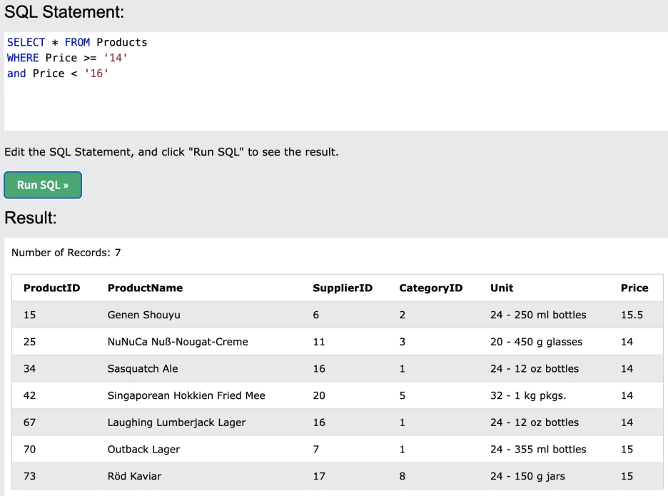 기획전을 어찌어찌 무사히 마친 우리 회사. 그런데 어느새 회사 창립 14주년 기념일이 코앞이다! 기념으로 14달러짜리 상품에 큰 할인율을 적용하기로 결정됐다. 아니 그런데 사장님이 갑자기 '내년까지 잘 부탁한다는 의미로 15달러도 포함시켜!'라고 하셨다. 14달러~16달러 미만의 제품을 찾아보자!