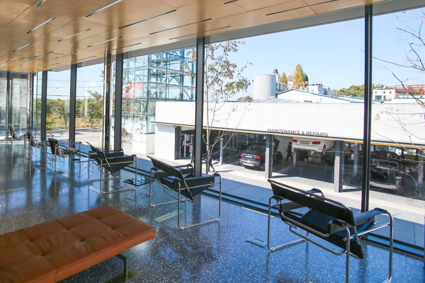 또한 약 400평 규모의 3개동 3층 건물 내에는 체계적인 정비를 위한 판금, 도장 부스를 비롯최신시설들을 구비해 하루 40대의 차량 정비,수리가 가능한 종합정비서비스 공간을 갖췄다.방문 고객을 위해 마련된고객라운지는 단순히 차량 정비를 위한 고객 대기 공간이 아닌 브랜드를 경험할 수 있는 공간으로써 품격 있는 고객 서비스를 제공할 계획이다.