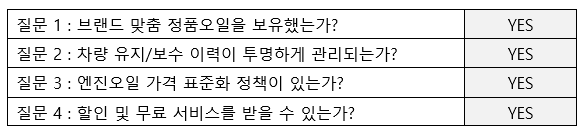업체의 접근성과 합리적인 가격, 믿을 수 있는 서비스를 제공하는 전문성을 갖춘 곳을 찾기 쉽지 않을 것이다. 제조사의 정식 서비스센터에서 엔진오일을 교체하게 되면 믿을 수는 있지만, 비용이나 접근성이 만족스럽지 못 한 경우가 있다.