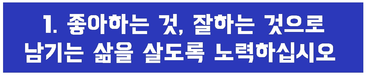 1. 좋아하는 것, 잘하는 것으로 남기는 삶을 살도록 노력하십시오.