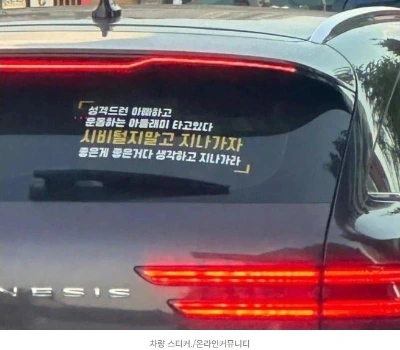 ‘건들면 이빨 부숴 드립니다’, ‘앞 차에 시비 걸면 피 봅니다’ 같은 스티커들이
