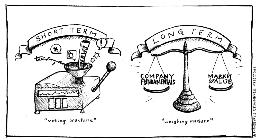 그에 더해, 단, 주식의 가격은 회사의 가치와 달리 변동하므로 언제나 회사의 가치가 매일 주식에 반영되지 않는다고 했다.