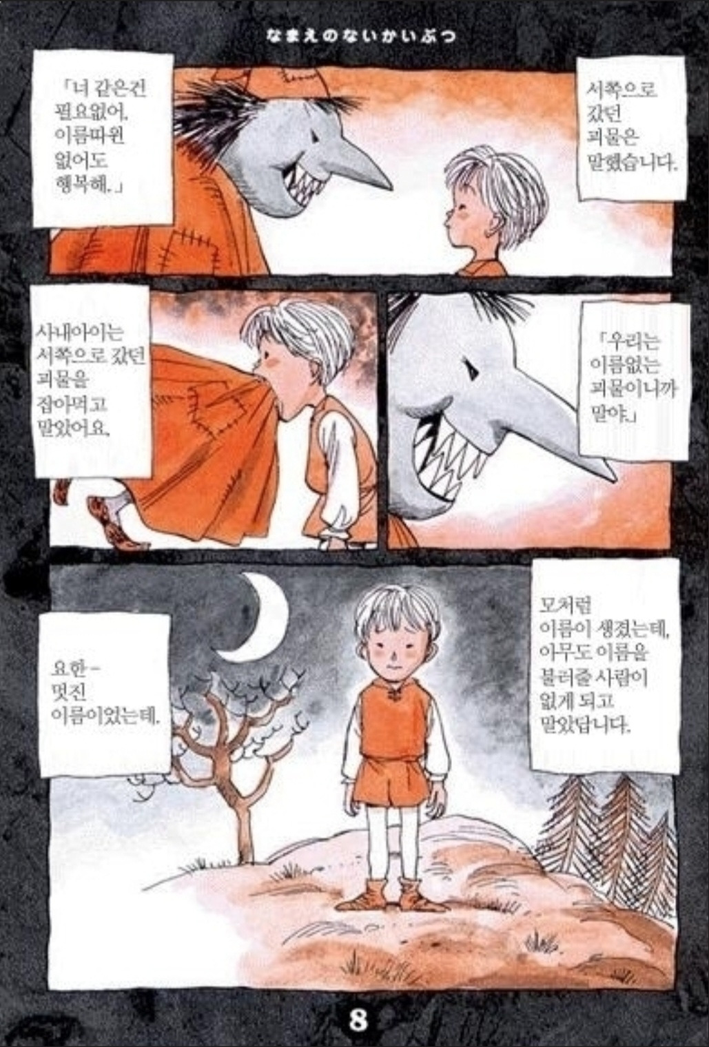 “나는 인간의 삶을 조금도 이해할 수 없었다. 그리고 이제, 나도 인간이 아님을 안다.”