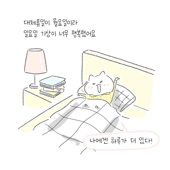대체휴일이 월요일이라 일요일 아침 눈을 뜨자마자 안도의 미소가 새어 나왔어요.