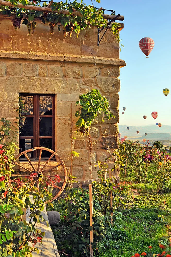 카파도키아를 방문하는 수많은 이유 중 하나는 바로 열기구 투어 때문이기도 한데요, 열기구에서 바라보는 일출이 평생 잊히지 않는 경험이라고 입을 모아 이야기합니다. 뮤지엄 호텔에서는 호텔의 객실을 포함한 곳곳에서 일출 시간에 떠오른 열기구들의 모습을 볼 수 있습니다. 열기구를 타고 일출을 바라보는 것도 아름답지만, 뮤지엄 호텔에서 수십 개의 열기구들이 떠오른 모습을 뜨는 해와 함께 감상하면 정말 아름답다고 해요. 특히 온수 풀에서는 위의 사진과 같은 인생 샷을 남길 수 있습니다.
