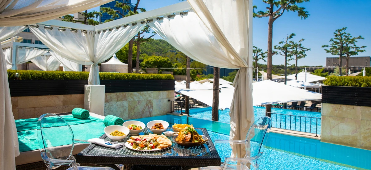 기본 부대시설인 호텔 사우나와 수영장 외에도 테니스 코트와 골프 아카데미, 실내 암벽등반 등 다양한 운동시설을 누릴 수 있어 활기찬 액티비티를 경험한 후에 여유로운 스파를 즐기기 안성맞춤인 장소입니다. 그중에서도 오아시스를 연상케 하는 이국적인 인테리어의 야외 수영장인 '더 오아시스'는 여름을 맞아 호캉스를 즐기려는 분들께 각광을 받고 있는데요. 요즘 같은 날씨에 방문하신다면 더 오아시스에서 펼쳐지는 풀사이드 바비큐 뷔페도 꼭 이용하시길 바랍니다.