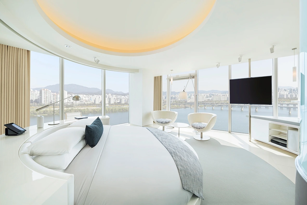 JW메리어트 호텔 서울은 단순히 보여지는 것만 화려한 럭셔리에서 한 발 더 나아가 열정 가득한 직원들이 진심을 다해 제공하는 섬세한 서비스를 통해 감동적인 경험을 선사하려는 럭셔리 호텔입니다. 객실은 쾌적하고 편안한 휴식에 초점을 맞추어 설계되었으며 펜트하우스와 스위트룸을 포함해 총 379개의 룸으로 구성되어 있습니다. 전통적인 한국의 미와 모던함이 어우러진 인테리어로 휴식과 힐링을 즐길 수 있는 최적의 공간을 제공합니다. 그림같은 한강의 전망과 럭셔리한 인테리어 속에서 최고급 서비스를 누리고 싶다면 JW메리어트 호텔 서울을 추천합니다.