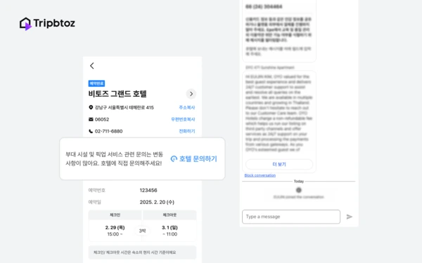 트립비토즈 현지 호텔 실시간 채팅 서비스