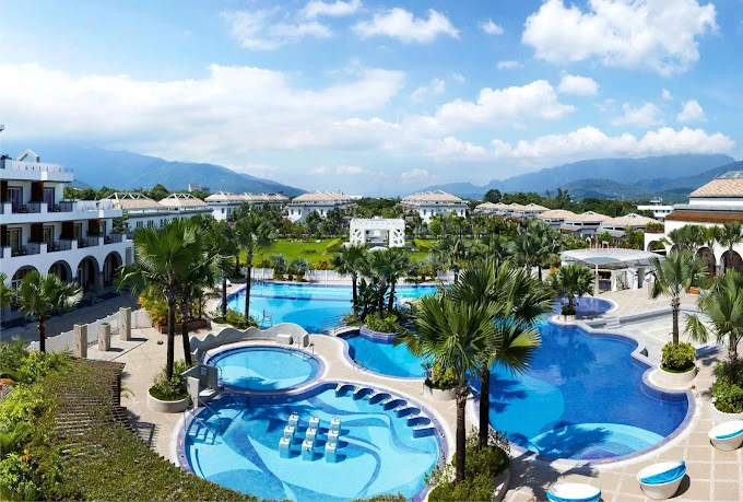 리조트의 대표적인 다이닝 시설 'Sunflower Court'는 유리온실에서 다양한 음식을 제공합니다. 'Rhalaenopsis Chinese'는 중국 음식을 선보이고, 'Rose cafe'에서는 수제 간식과 빵, 음료 등을 맛볼 수 있어요. 부대시설로는 연회장, 레크리에이션 센터, 비즈니스 센터, 사우나, 아트숍 등이 조성돼 있고 야외 공간에는 5개의 테마 풀이 있는 아트리움 수영장과 생태공원도 운영되고 있다고 해요.