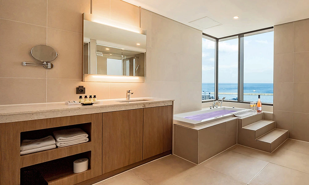 강릉 세인트존스 호텔은 국내 대표 펫 프렌들리 호텔로 펫 전용 객실을 운영하며 전용 어메니티까지 제공하고 있습니다. 기본으로 제공되는 반려견 어메니티는 스너그 하우스와 방석, 반려견 전용 수건 2장, 배변 판, 배변패드와 배변봉투 각 2장, 그리고 전용 샴푸가 제공됩니다. 이외에도 히노끼탕과 드라이룸, 드라이기, 펫 정수기, 펫 유모차 등은 유료로 대여가 가능합니다.