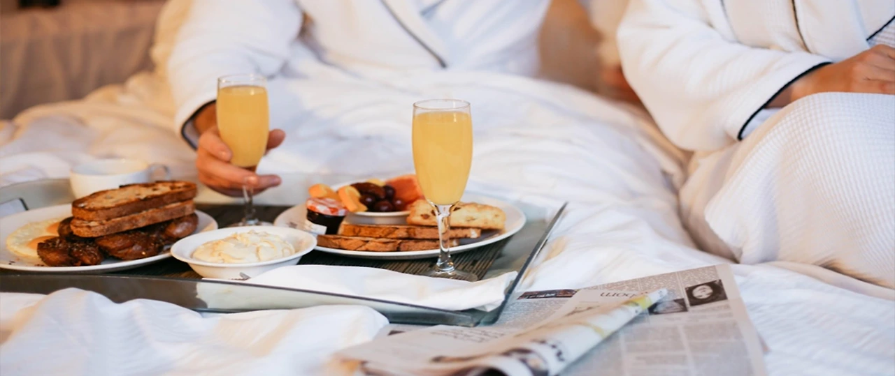객실 내에서 식사나 음료를 즐길 수 있도록 호텔에서 객실까지 주문한 음식을 배달해 주는 서비스로 인 룸 다이닝(In Room Dining)이라고 부르기도 합니다. 호텔 내 식음 업장에서 판매하는 메뉴와 조식을 주문할 수 있으며 종업원이 객실에 들어와 테이블 세팅까지 준비해 주는 서비스입니다.