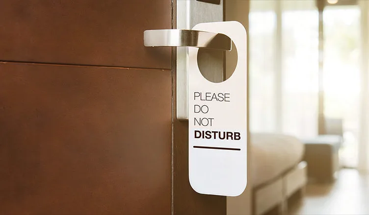 객실에 종업원의 출입을 원치 않는다는 표시로 객실 문에 걸어두는 문구인데요. 연박을 하는 경우 객실 정리나 청소 서비스가 제공되는데 이를 원치 않으며 방해받고 싶지 않다는 메시지를 전달합니다.
