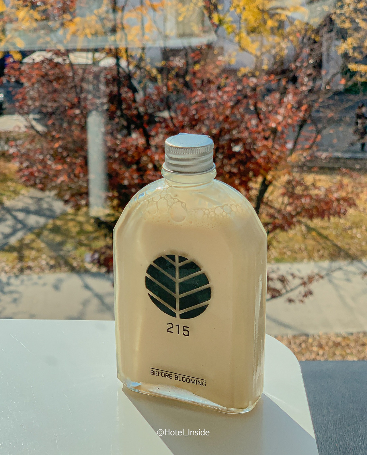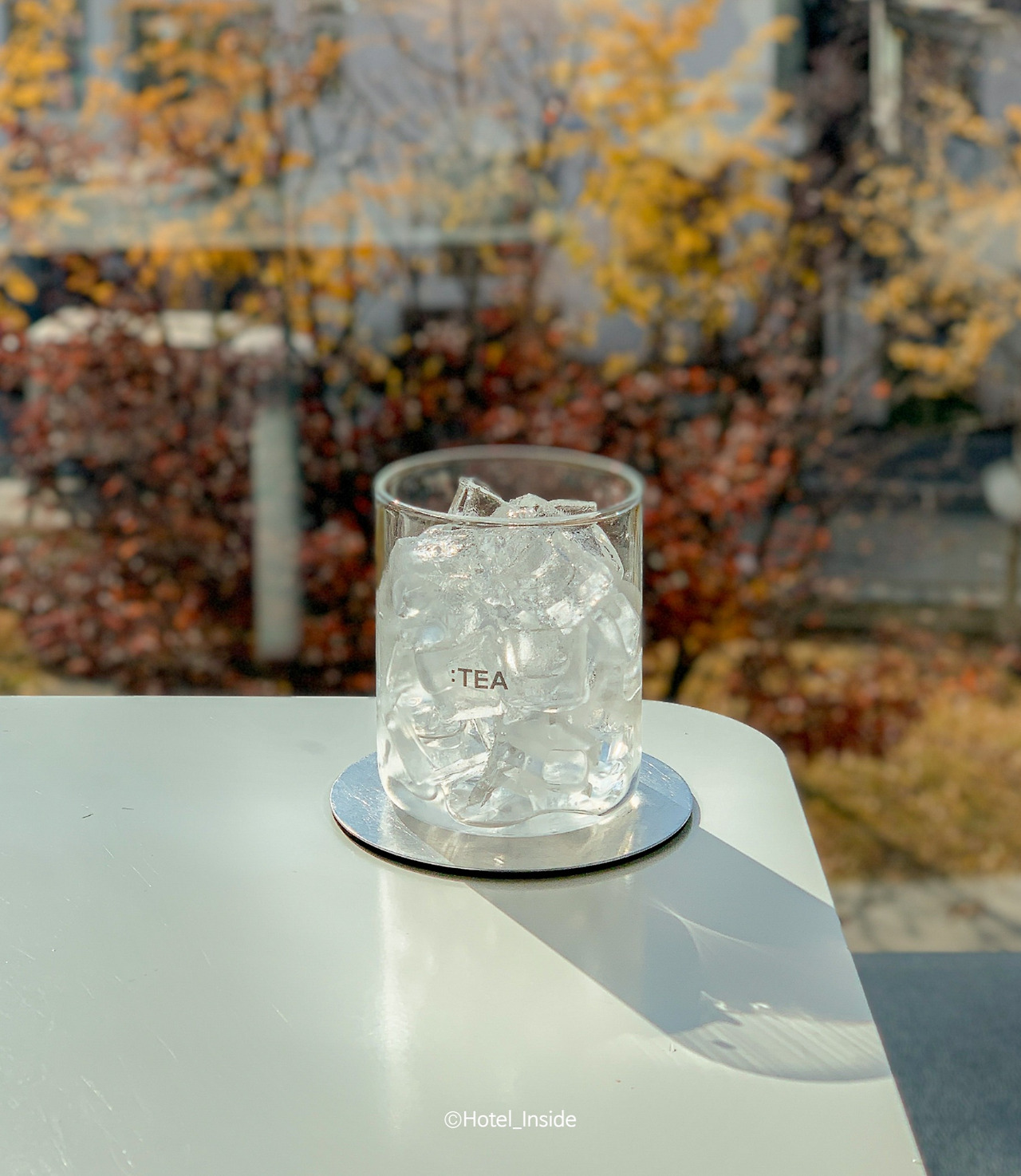블랙 밀크티를 주문하니 쇼케이스 속 귀여운 병에 담긴 밀크티와 유리잔을 함께 주셨어요. 사소하지만 컵 받침을 주는 곳이 은근히 잘 없는데 컵 받침을 주셔서 좋았고요. 사실 평범한 유리잔인데 배경과 햇빛이 너무 예뻐서 막 찍어도 인생샷이 나오더라고요.