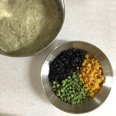 감자, 콩, 옥수수, 당근, 사과 등등을 넣고 비벼요.
