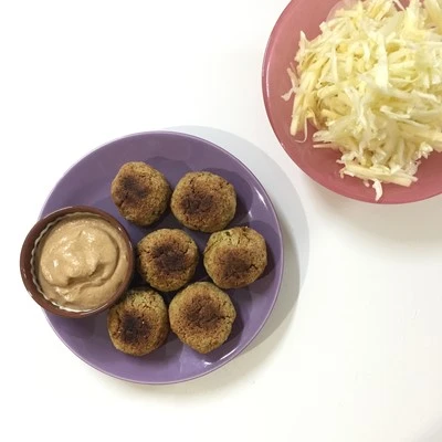 푸드프로세서에 몽땅 갈아요. 냉장고에 30분-1시간가량 넣어 놓고 차가워지면 동그랗게 만들어요. 탁구공 크기. 180도 오븐에서 25-30분 구워요. 팔라펠은 튀겨야 맛있는데 집에서 뭘 튀겨 먹고 지져 먹는 집이 아니라 집에 기름이라고는 비싼 올리브유밖에 없어요. 그래서 구웠습니다. 저희 동네 휴대폰 가게에서 휴대폰을 사면 에어프라이어를 준다는데 암튼 에어프라이어에 기름 살짝 바르고 구우면 더 맛있지 싶어요. 오븐에 구우면 식은 다음엔 조금 뻣뻣하거든요. 양배추는 올리브오일:식초:단 거=2:2:1 비율 드레싱. 급할 때 혹은 가볍게 먹을 때 좋습니다.