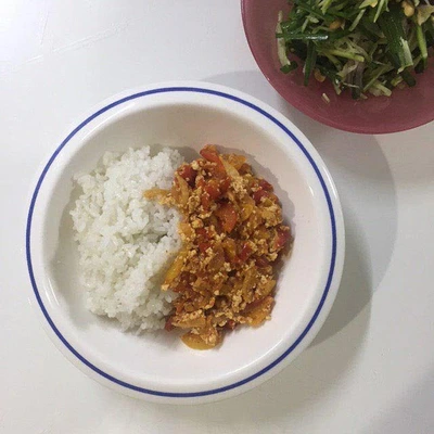 양파, 파프리카를 가늘게 채 썰어서 흐물해지도록 볶아요. 두부는 적당히 물기를 빼서 넣고 으깨요. 고춧가루, 간장 넣고 볶아요. 마무리는 후추. 보들보들해서 술술 넘어가요. 어린이의 맛. 어린이 맛이 나온 김에,