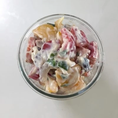 재료 몽땅 믹서에 넣고 윙 갈아요. 아무리 후진 믹서라도 반질반질 매끈하게 갈려 있을 거예요. 두부는 한살림 제품 애용해요. 시판 두부는 300g인데 한살림은 400g. 실제로 무게를 달아보면 470-490g정도 돼요. 국산콩이고 가격은 1950원입니다. 마요네즈 만들고 남은 것은 찌개나 국에 넣음 딱 맞는 양이에요. 두 식구, 풀 많이 먹는 집 기준으로 샐러드 서너 번 만들 양이에요. 애플사이더식초가 없으면 레몬주스를 20g 넣으세요. 아니면 그냥 식초 넣어도 문제없어요. 레몬주스는 아래에 추천 제품 올려놓을게요. 레몬 모양 노란 통의 쓴맛 많은 레몬주스와 비교도 안 되게 맛있어요. 그동안 먹어 본 레몬주스 중 가장 맛있습니다. 암튼 이걸 만들어서 뭘 하냐면요,