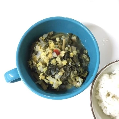 손질한 시래기 두 주먹, 렌틸콩 1컵, 양파 1개, 태국고추 1개, 대파 1/2개, 마늘 3톨, 간장, 후추. 다시마물.