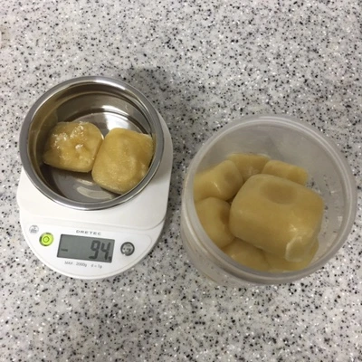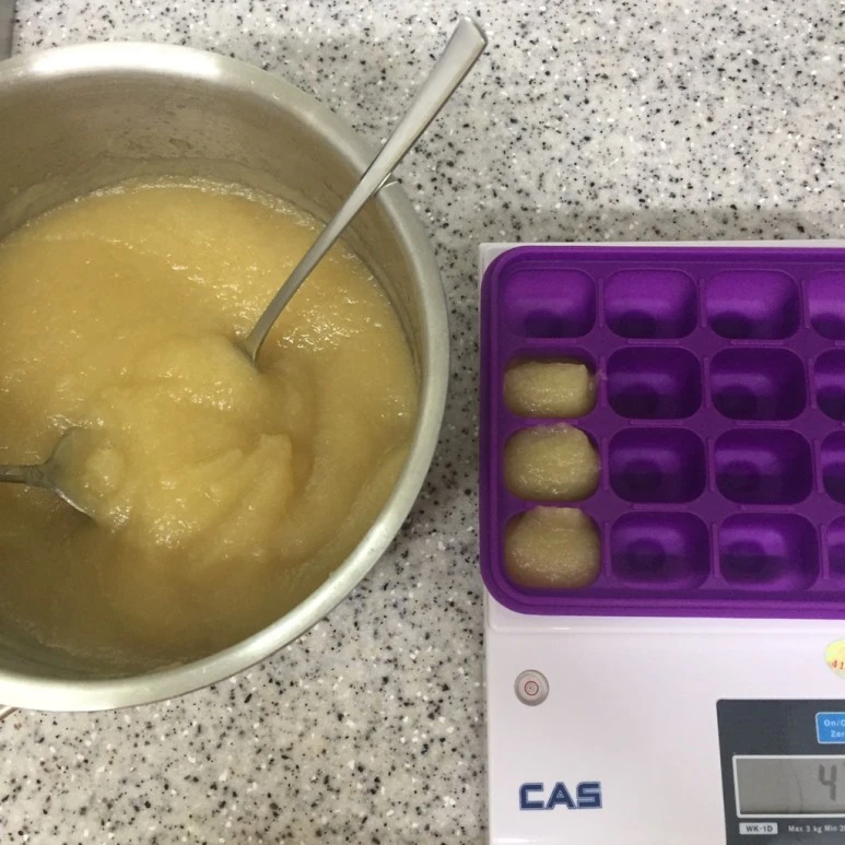 그런 다음 요 놈을 실리콘 얼음틀에 (기왕이면 56g씩) 넣고 얼리는 거예요.