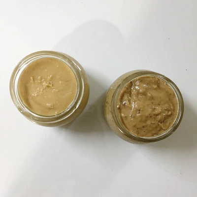 버터마다 멍울처럼 보이는 것이 있잖아요? 그건 거품 자국이예요. 만들자마자 사진을 찍었거든요. 시간은 아몬드>캐슈>땅콩 순으로 걸립니다. 시판 넛츠버터들과 달리 집에서 만들면 기름이 분리되는 현상도 없어요. 공장산은 기계가 엄청 좋아서 (그래서 하도 세게 갈려서) 기름이 분리되나 봅니다.