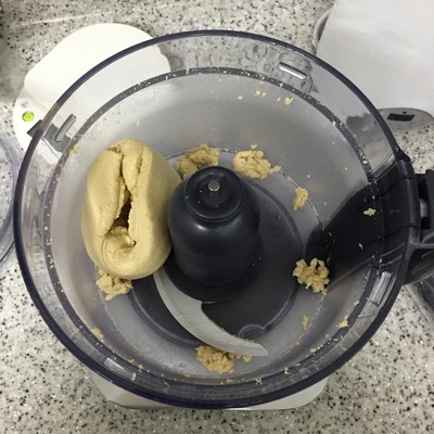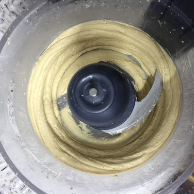 1. 한 덩어리가 풀어진 후 푸드프로세서 안을 들여다보면 버터가 천천히 회전하고 있을 거예요. 이 회전 속도가 점점 빨라져서 칼날 도는 속도와 얼추 박자가 맞으면 그때 완성이예요. 경쾌하게 빨리 돌 때까지 돌리세요.