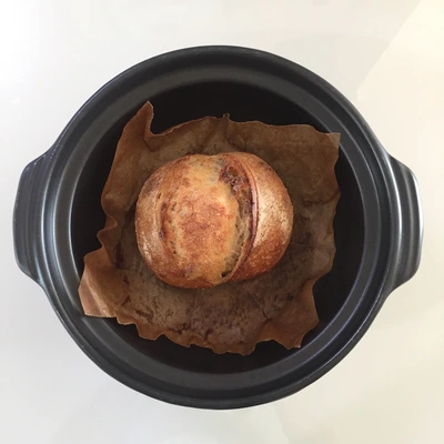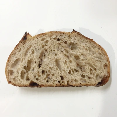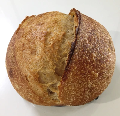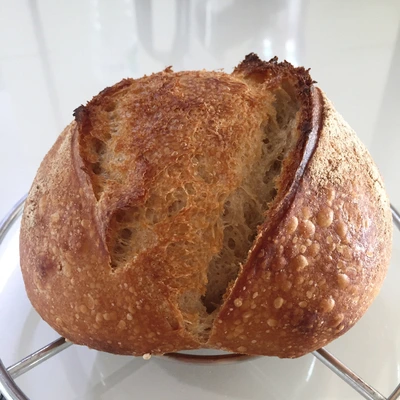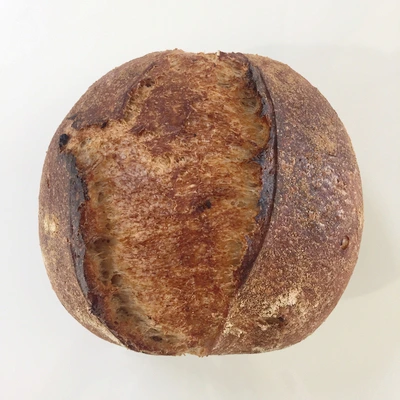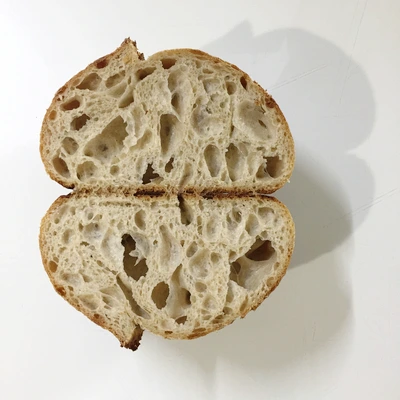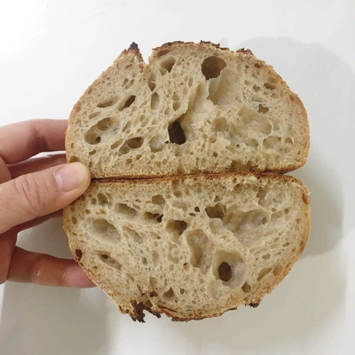 현재 진행형이예요. 그동안은 킹아서, 밥스레드밀 사용했고요 스타터도 이들로 키웠어요. 우리밀을 먹어야 겠다는 생각에 이달 초 '산아래 토종 우리 밀가루' 조경밀과 금강밀을 무려 9kg이나 주문했고, 그걸로 빵을 구웠지요. 결과는 정말 처참했습니다. 하여 사워도우 스타터를 수입밀에서 우리밀로 변환(?) 전환(?)시키기 위해 열 흘 동안 하루 두 번 혹은 세 번씩 밥을 주웠어요. 그리고 구운 첫 빵이 이거예요.
