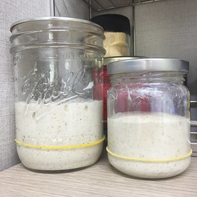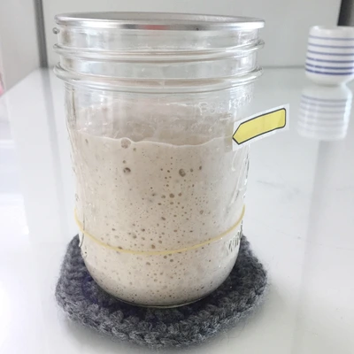 빵을 만들고 나서 2-3일 안에 빵을 만들 계획이 없으면 스타터를 냉장고에 넣어 보관해요. 2-3일인 이유는, 냉장고에서 꺼낸 스타터에 2-3일(급할 때는 혹은 냉장고에 넣은지 얼마 지나지 않았을 때는 1-2일) 동안 밥을 줘서 스타터가 건강해지면 빵을 만들기 때문이예요. 저는 이렇게 해요. 밥을 준 다음 여름에는 1-2시간, 겨울에는 3-4시간이면 스타터가 두 배가 되는데, 두 배가 되기 전에 병뚜껑 꽉 닫아 냉장고에 넣어요.