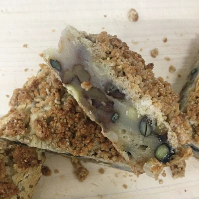 3. 하지만 저는 주로 이렇게 해요. 실리콘 머핀틀에 소보루 가루를 한 숟가락 정도 넣고 바닥을 꾹꾹 눌러 다진 다음, 그때 그때 집에 있는 재료를 넣어요. 엄마네서 얻어 온 쑥떡(찌지 않은 냉동반죽), 콩, 팥앙금, 초콜릿, 카라멜, 과일잼 등등이요. 가운데 재료를 적당히 넣은 다음 그 위에 소보루를 보슬보슬 뿌려요. 이렇게 만드는 데 오 분도 안 걸려요. 180도 오븐에서 10-15분 정도 굽습니다. 저녁밥 준비하면서 두 개 만들어 디저트로 각자 하나 씩 먹으면 딱 좋아요.