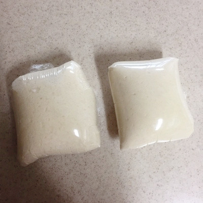 5. 냉동 보관하는 방법 - 7번, 분할해 동그랗게 만든 다음, 비닐 랩으로 싸요. 실온에 5분 정도 두면 랩으로 싼 반죽이 아래와 같이 빵빵해질 거예요. 그럼 냉동실에 넣고 얼려 보관합니다.