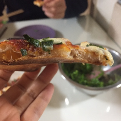 4. 1인분에 반죽 150g 기준이에요. 샐러드와 함께 먹으면 기분 좋게 배부른 양.