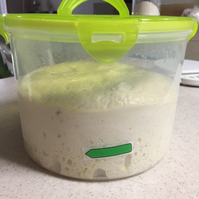 5. 이제 냉장고에 들어갈 시간이에요. 냉장고 안에서 반죽이 조금씩 부풀 거예요. 반죽의 상태에 따라, 그리고 몇 배로 부풀리고 싶은지에 따라 이틀에서 삼 일이 걸려요. (뭐? 삼 일? 그럼 언제 먹어 싶잖아요? 더 빨리 만드는 방법은 아래에 있어요. 하지만 천천히 시간을 많이 줘야 더 맛있어요.)