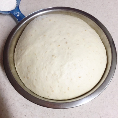 6. 믹싱 볼에 가볍게 기름을 바르고 매끈해진 5의 반죽을 넣고 믹싱 볼을 비닐이나 젖은 면보로 덮은 다음 반죽이 두 배 이상이 될 때까지 발효시켜요. 요즘 날씨면 한 시간 정도 걸릴 거예요.
