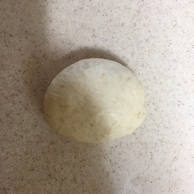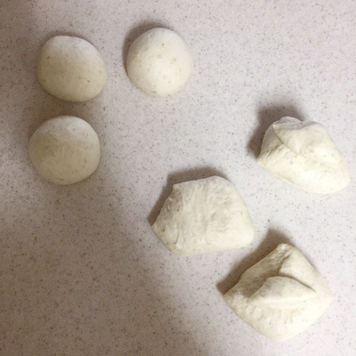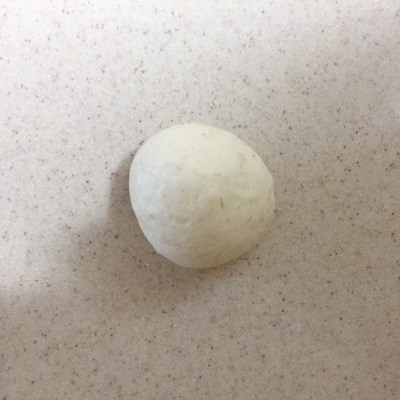 7. 6의 반죽을 작업대 위에 쏟고 원하는 크기로 분할해 동그랗게 만들어 15분간 둡니다. 반죽이 마르지 않게 위에 비닐 등으로 덮어 놓고요. 전 남편이 먹을 것은 75g으로, 제가 먹을 것은 65g으로 분할해요.