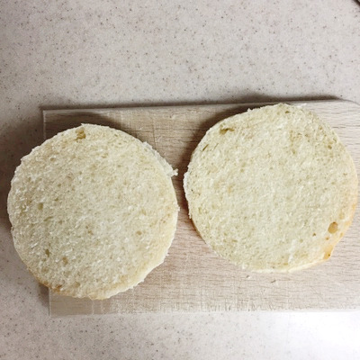 4. 빵이 완전히 식으면 밀폐해서 냉동 보관해요. 자연 해동 후 반 갈라 기름 두르지 않은 후라이팬에 빵 먼저 데우고, 버거 패티 데워요.