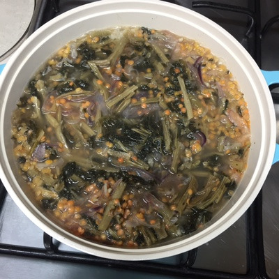 4. 만들기 1,2,3.. 해 놓고 보면 복잡한데, 간단히 말하면, 양파 마늘 볶다가 렌틸콩 넣고 볶고 시래기 간장 넣고 볶다가 물 붓고 끓인다입니다.