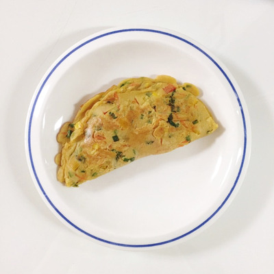 4. 볶은 채소 꼭 넣으세요. 채소 없이 반죽만 부치면 덜 오믈렛스러워(?)요.