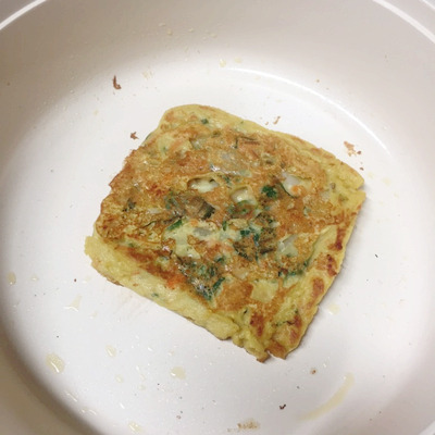 3. 달군 팬에 기름을 조금 두르고 중약불에서 부쳐요.