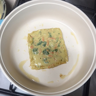 5. 스테인리스 팬 고수가 아니라면 코팅 팬에 하세요. 스테인리스 팬에 채소 볶은 후 같은 팬에 부치면 곧잘 찢어지더라고요. 그렇다고 팬 두 개 쓰기는 또 싫잖아요.